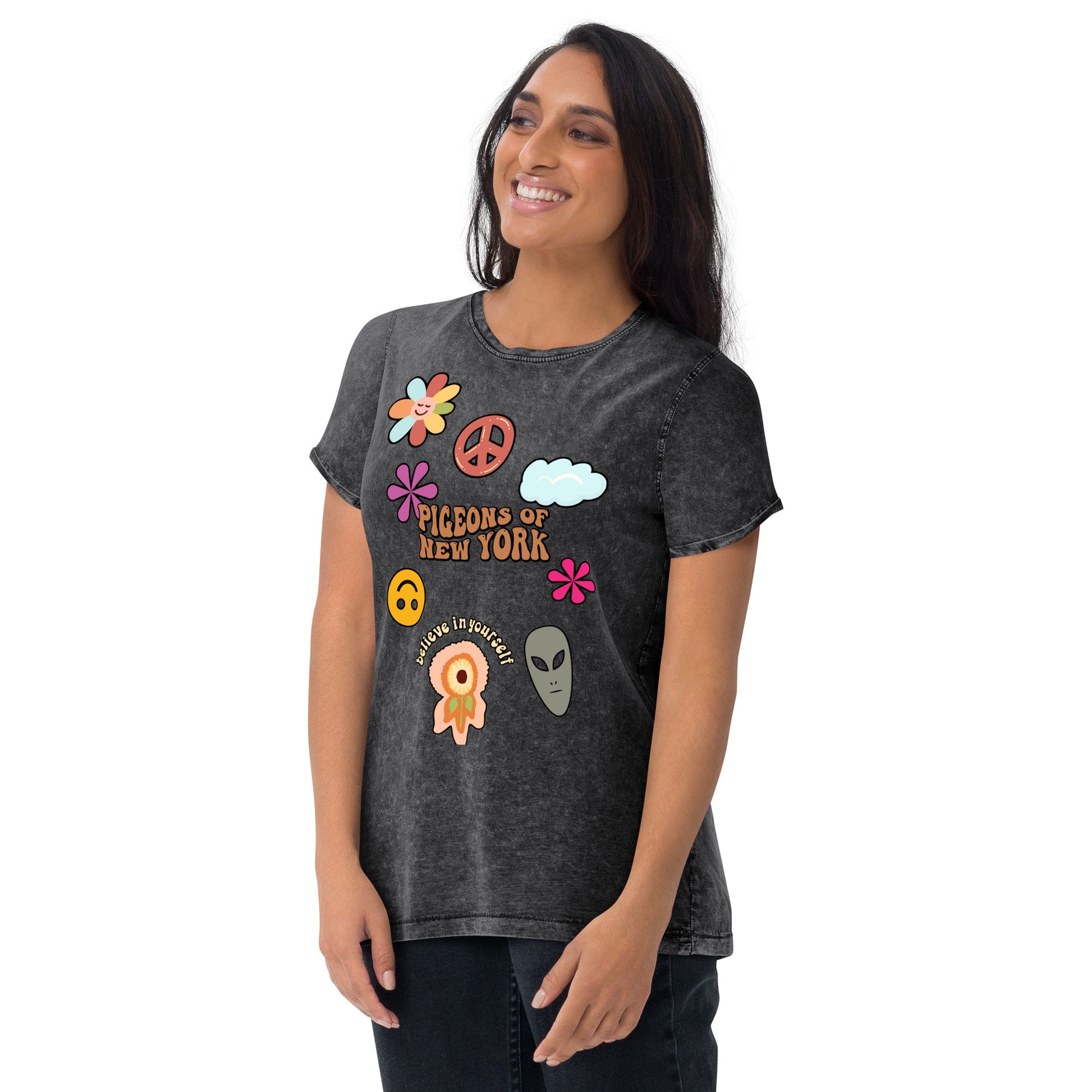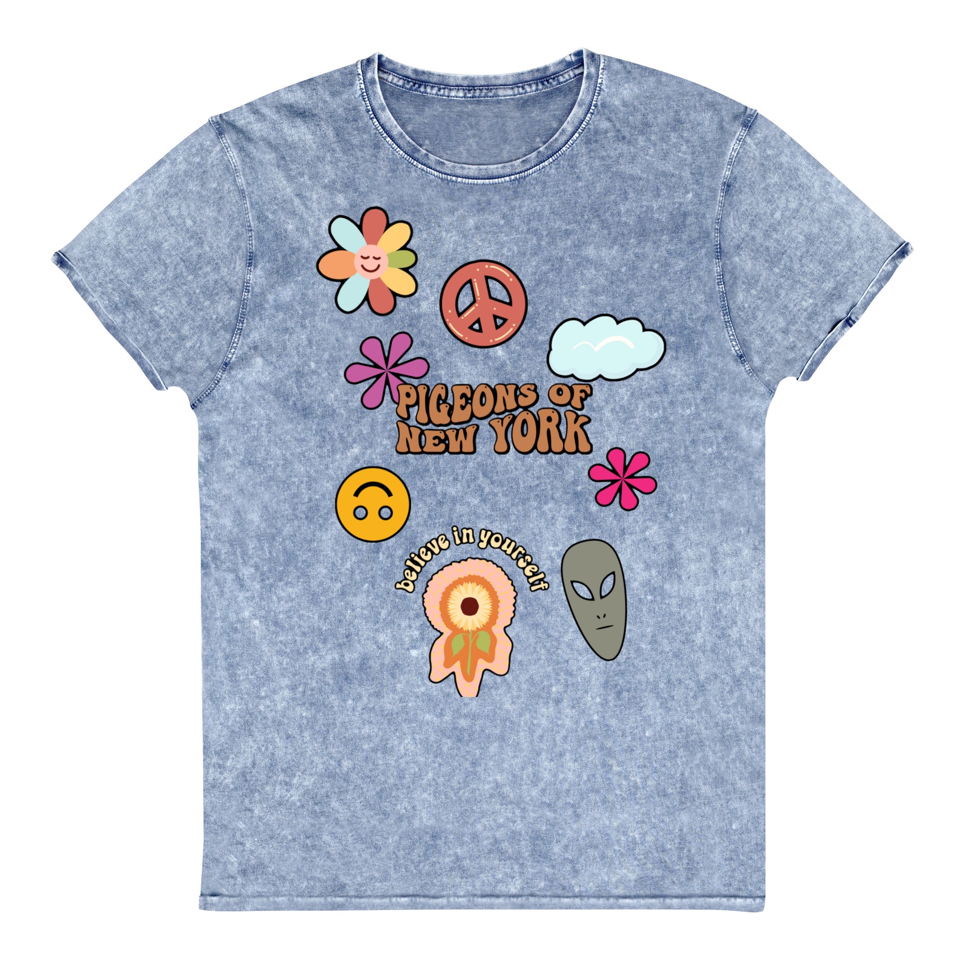 This denim t-shirt is made out of 100% combed cotton and has a classic rounded neckline with ribbed sleeve cuffs. It's soft, comfortable, and a must-have for every fashion enthusiast!